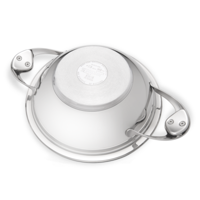 WOK z pokrywką 30 cm i pojemności 4,5 l wykonany został z metalu 316L, który jest bardziej przyjazny środowisku i o 50% wytrzymalszy od stali nierdzewnej. Naczynie ma płaskie dno, przez co pasuje także do palników gazowych i płyt grzewczych. Wok wyposażony jest w nienagrzewające się, długie uchwyty i objęty jest 30-letnią gwarancją.