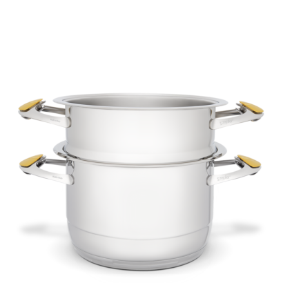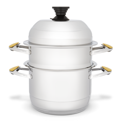 Naczynia są ze sobą kompatybilnie, możesz je więc dogodnie ustawiać do wielopoziomowego gotowania na jednym źródle ciepła.