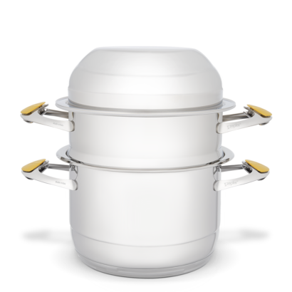 Naczynia są ze sobą kompatybilne, możesz je więc dogodnie ustawiać do wielopoziomowego gotowania na jednym źródle ciepła.